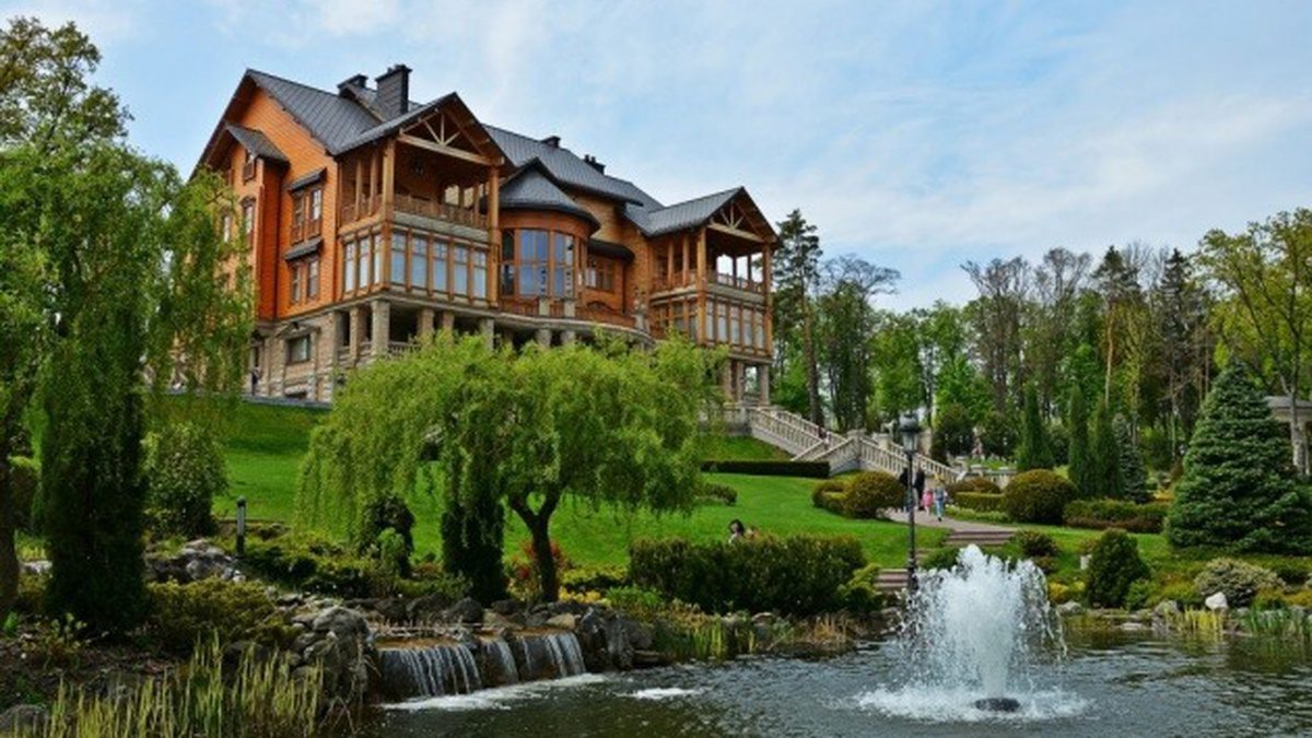 Главная резиденция – это огромное здание, облицованное камнем и частично построенное из деревянных срубов. Интерьер резиденции поражает роскошью.