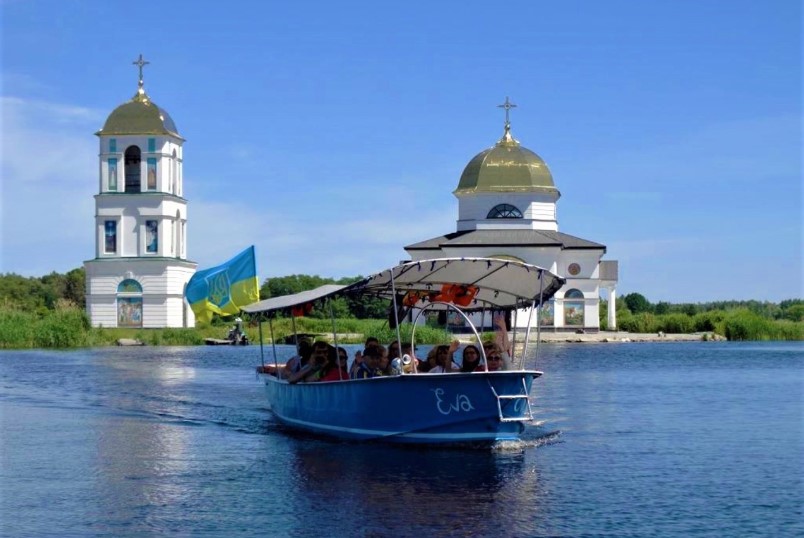 - На территории водохранилища было расположено село Гусинцы, в котором находились старинная церковь и колокольня. Несмотря на то, что поселок был полностью затоплен, Спасо-Преображенская церковь, которая была построена в начале XIX века, не только уцелела, но и до сих пор действует. Святыня находится на небольшом острове в 200 метрах от материковой части. В народе небольшой участок, на котором расположена церковь называют Островом ведьм. По легенде женщины собираются там, чтобы подпитаться энергией природы. Для того, чтобы добраться до церкви нужно плыть на лодке из города Ржищев. Некоторые смельчаки посещают остров зимой, пешком преодолевая покрытое льдом водохранилище.