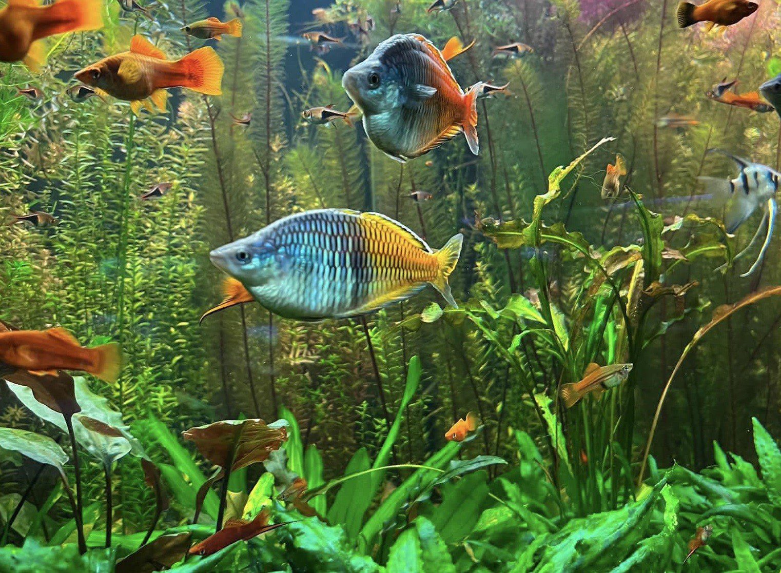 Акваріум – це так званий магніт Будинку природи, його неймовірне наповнення екзотичними рибами та рослинами привертає увагу не лише дітей, алей дорослих. У них мешкає більш ніж 60 видів риб та 120 видів живих водних рослин, а також рептилії — червоновухі черепахи, ігуана Міша та пітон Гріша. Новою фішкою є те, що це перший у колекції біотопний акваріум. Біотопний — означає максимально наближений до природних умов. Нова композиція — це частинка дощової річки Амазонки.