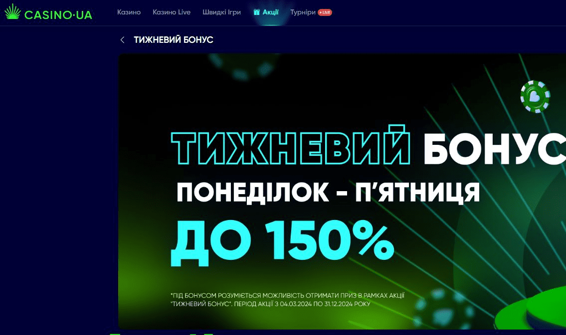Багато онлайн-казино винагороджують гравців за поповнення рахунку не лише у рамках вітального бонусу. Найчастіше такі заохочення надаються постійно. Для їх отримання достатньо активувати подарункову пропозицію та внести депозит, сума якого перевищує встановлений мінімум. До закладів, які регулярно нагороджують клієнтів за вхідні транзакції, належить популярний ігровий майданчик Casino UA.